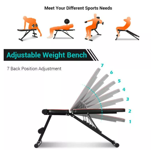 แข็งแรง สวยงาม รับน้ำหนักได้ถึง 250 กิโลกรัม ผลิตจากเหล็กคุณภาพสูง (High Quality Steel)พับได้ โดยพับแล้วมีขนาดเป็น 80 x 32 x 50 ซม.มีสปริงช่วยดึงตัวขณะเล่นหน้าท้องซิทอัพ ช่วยให้เล่นซิทอัพได้ง่ายขึ้น และนานขึ้นปรับระดับองศาการซิทอัพได้ 2 ระดับตามความต้องการปรับระดับระดับที่ล็อคเข่าได้ 4 ระดับ รองรับทุกๆ ความสูงของผู้เล่นมีแกนจับด้านปลายของเก้าอี้ รองรับการวิดพื้น Push Up กับตัวเก้าอี้ป้องกันอาการบาดเจ็บได้เป็นอย่างดีมีแกนจับข้างของเบาะเก้าอี้ รองรับการวิดพื้นแบบ Bench Push Upมาพร้อมสายแรงต้าน สำหรับเล่นไหล่และหลัง ได้เบาะหนา. หุ้มด้วยหนังเทียม PU อย่างดี ทนทาน ไม่ขาดง่าย ไม่มีปัญหาเรื่องเหงื่อไคลรองรับการเล่น Reverse Crunch และ Leg Raise ซึ่งต้องมีเบาะที่ใหญ่ และแข็งแรง ถึงจะรองรับท่าเหล่านี้ได้น้ำหนัก 8 กก.