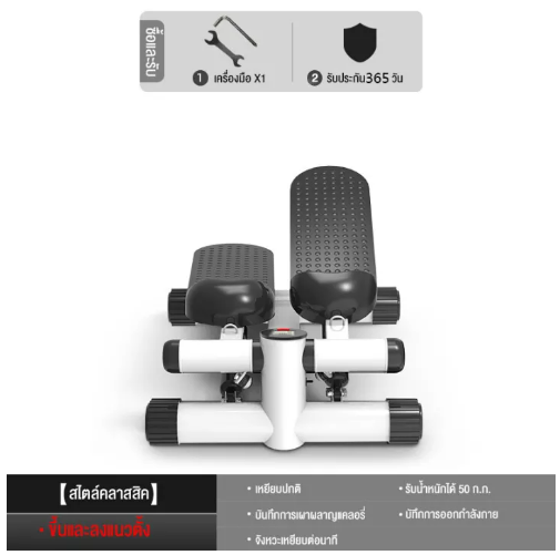• สามารถรับน้ำหนักผู้เล่นได้ถึง 150 kg.คุณสมบัติMini Stepper เป็นเครื่องออกกำลังกายแบบเหยียบขึ้นลง เป็นเครื่องออกกำลังกายที่เลียนแบบการก้าวขึ้นบันไดที่จะช่วยให้คุณออกกำลังกายได้อย่างสนุกสนาน ช่วยให้คุณเผาผลาญไขมัน และแคลอรี่ได้อย่างง่ายดาย ออกกำลังกายได้ทั้งตัว โดยเฉพาะช่วงเอว สะโพก ต้นขา น่อง Mini Stepper ใช้ระบบของโช๊คอัพ ขณะผู้เล่นก้าวเหยียบแท่นขึ้นและลง จึงช่วยลดแรงกระแทก และมีความปลอดภัยต่อข้อเข่าอย่างมาก