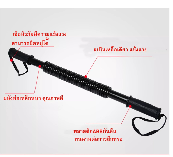 สินค้า อุปกรณ์ออกกำลังกายกล้ามแขน ความยาวรวม 59 cm ระดับ 20,30,40,50,60 kg ความยาวสปริง 23 cm น้ำหนัก 1.06kg ความยาวด้ามจับ 10 cm