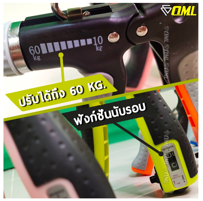 1.สปริงบีบมือ สามารถปรับแรงตึงอิสระ ได้สูงสุดถึง 60 KG.