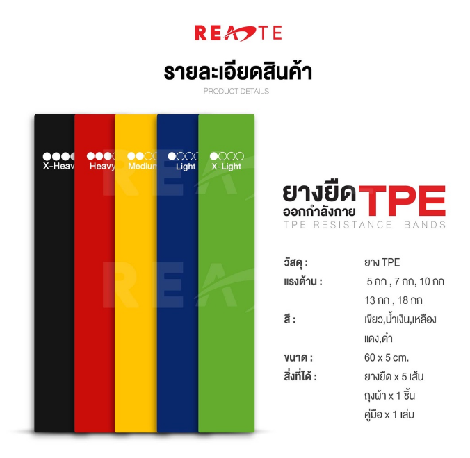 สินค้า : ยางยืดออกกำลังกาย แรงต้าน 5 ระดับ RESISTANCE BANDS