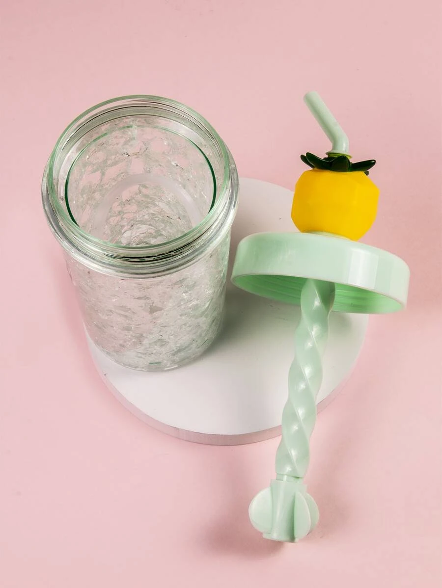 แก้วเก็บความเย็น 1 ชิ้น แบบพกพา และ หลอด สร้างสรรค์ สีเขียว ลายเลมอน แก้วพกพารักษาอุณหภูมิ สำหรับ กลางแจ้ง pp-89