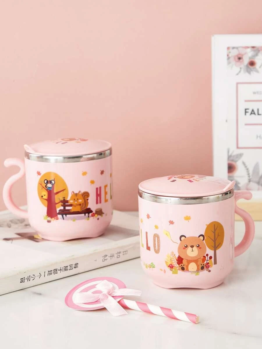 แก้วมัค 1 ชิ้น สแตนเลส และ ฝาปิด น่ารัก ลายการ์ตูน แก้วมัค oo-216