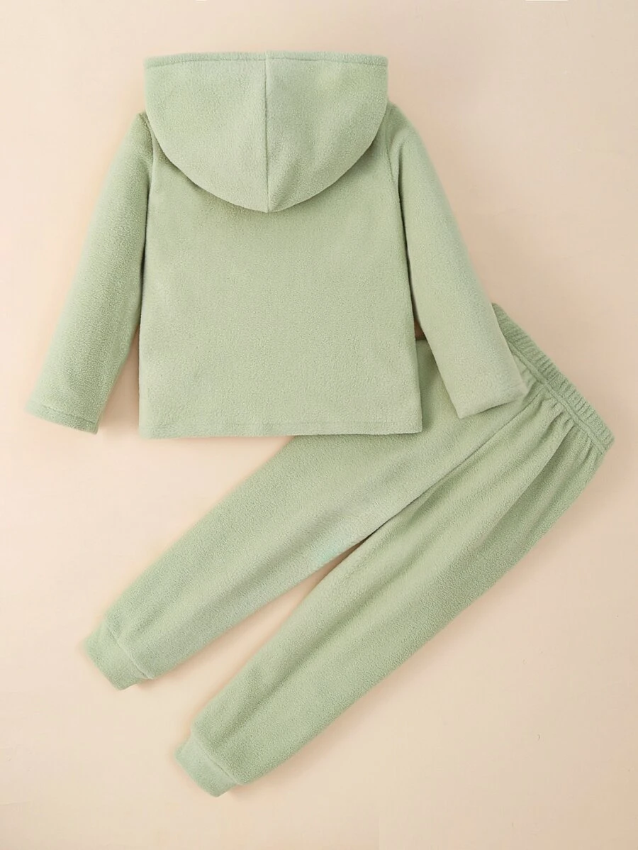 เด็กผู้หญิง 1 ชิ้น แจ็กเกต สีพื้น ปิดซิป ผ้าขนแกะ ฮูด พร้อม 1 ชิ้น กางเกงขายาว a-77