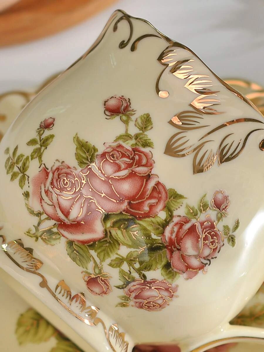 แก้วมัค 1 ชิ้น ลายดอกไม้ และ ที่รองแก้ว 1 ชิ้น และ ช้อน 1 ชิ้น oo-145