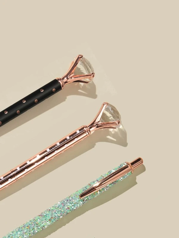 ปากกาลูกลื่นประดับเพชรและเลื่อม 3 ชิ้น s-41