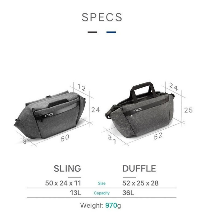กระเป๋า NIID CACHE Hybrid Sling Pack and Duffel กระเป๋าที่ได้รับการระดมทุนใน Kickstarter