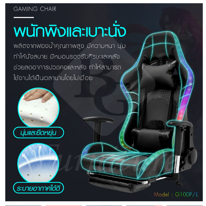 ออกแบบให้มีไฟ RGB เพื่อให้เก้าอี้ไม่น่าเบื่อ ทันสมัย เปลี่ยนสีด้วยรีโมท