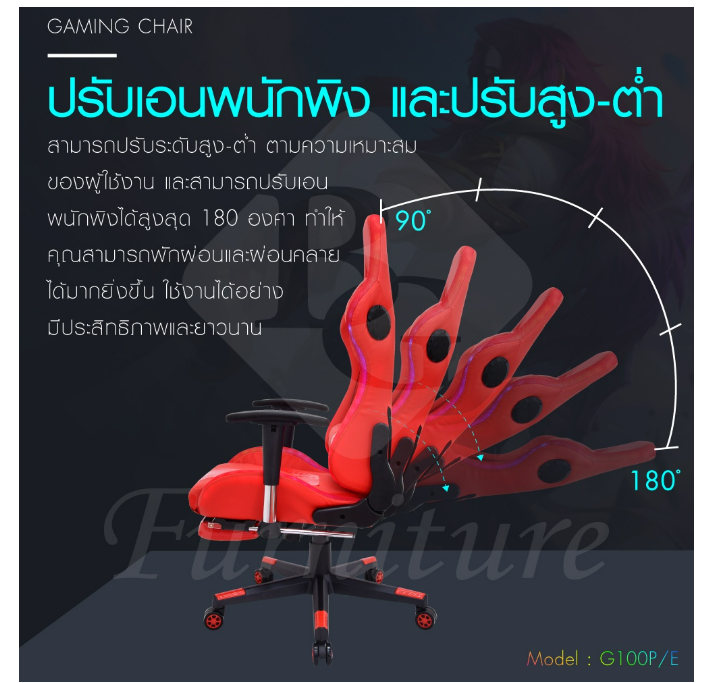 สูงสุด 180 องศา ทำให้สามารถผ่อนคลายได้มากขึ้น ใช้งานอย่างมีประสิทธิภาพ ยาวนาน