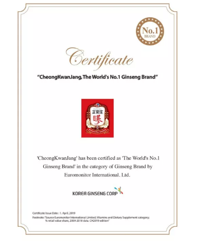 - KGC's brand of Korean red ginseng, Cheong-Kwan-Jang brand (CKJ), is knowntranslated as "a government-assured, reliable product, packaged in a governmentworld's representative brand of Korean ginseng and boasts over one hundred years of Cheong-Kwan-Jang emblem itself was designed using the national motif of Korea's historical Taeguk mark with modern characters representing red ginseng and six stars symbolizing the six each ginseng root, our commitment to only the best quality products. The red background symbolizes the passion put into every effort to produce the world's best Koraen red ginseng. Now exported to over 40 countries all over the world and our brand valued locally and abroad. Many ginseng fans declare a miraculous efficacy of Korean red ginseng when compared to less herbs and consume it regularly as a marvelous supplement for healthy living. So that, in November 1995, when the Chinese head of state, Jiang Zemin, visited Korea, a gift of Heaven's Grade (the highest grade of) Korean red ginseng was presented to him as an honor. As a first among all Korean health foods, Cheong-Kwan-Jang brand ginseng has been sold through Harrods Department Store of UK,amongst other prestigious department stores throughout the world. More than 50 stores have been established in 8 countries such as the U.S and others. In 2009, by achieving Saudi GMP (Good Manufacturing Practices), Cheong gaining a foothold in the Middle East. In fact, in North America, we have over 30 brand stores, which sell products, exclusively (as of the writing of this article). KGC guarantees the safety of all Cheong products by carrying out ginseng sample analysis, soil analysis and cultivation method education throughout the cultivation period. Our production is done within state factory, and we guarantee that the quality of our product materials cannot be imitated by any competitor.Trusted for over 113 years, today, CKJ branded products can be found in CKJ: Synonymous with Trust KGC's brand of Korean red ginseng, CKJ, is known as "Cheong-Kwan-Jang" in East Asia.
