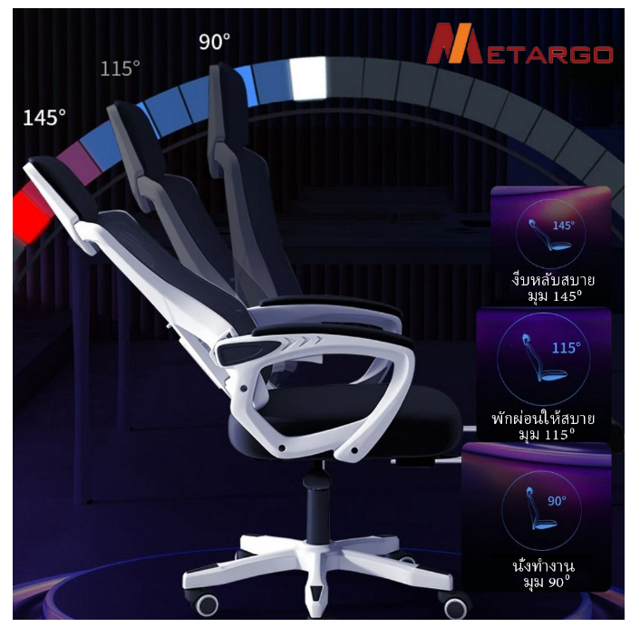 ✅พนักพิงหลังสูงทำมาจากผ้าตาข่าย ยืดหยุ่น ระบายอากาศ รองรับน้ำหนักได้ดี