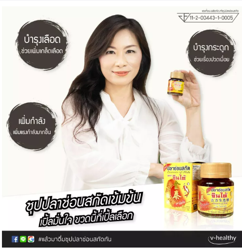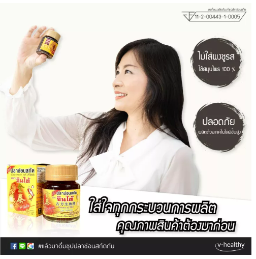 เครื่องดื่มซุปปลาช่อนสกัด ตรา จินไท้ ผลิตจากเนื้อปลาช่อน เกรดเอ คัดพิเศษ ตุ๋นรวมกับสมุนไพรจีน 4 ชนิด ผ่านกรรมวิธีการผลิตที่ทันสมัย ได้มาตรฐาน บำรุงสมอง ระบบไหลเวียนโลหิต ผิวพรรณเปล่งปลั่งสดใสดูอ่อนกว่าวัยเครื่องดื่มซุปปลาช่อนสกัด ตรา จินไท้ ผลิตจากเนื้อปลาช่อน เกรดเอ คัดพิเศษ ตุ๋นรวมกับสมุนไพรจีน 4 ชนิด ผ่านกรรมวิธีการผลิตที่ทันสมัย ได้มาตรฐาน