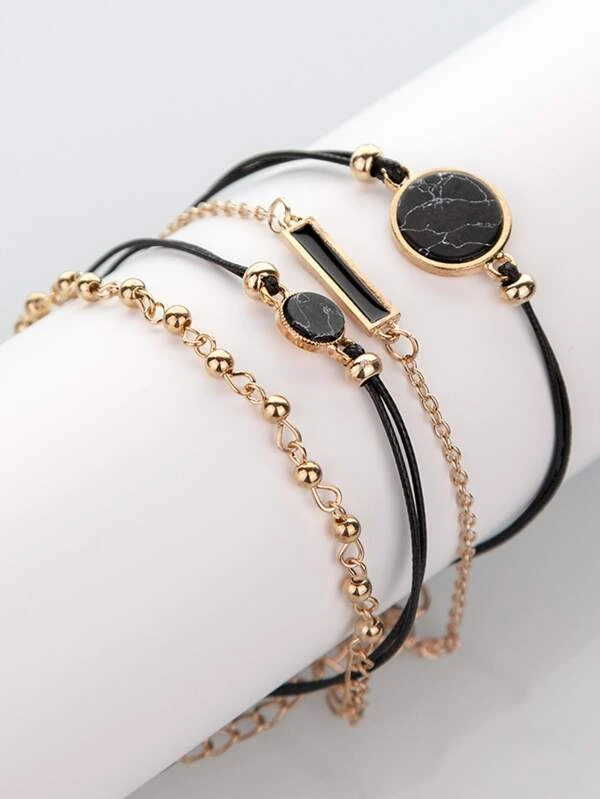 1 ชิ้น พลอยเทียม นาฬิกาข้อมือ & 4ชิ้น สร้อยข้อมือ น-0171