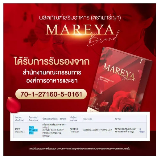 ?ไม่ระบุชื่อสินค้าหน้ากล่อง? ผลิตภัณฑ์เสริมอาหาร มารีญา Mareeya ยาบำรุงสตรี ตัวช่วยดูแลคุณผู้หญิงทุกวัย ได้จากสารสกัดจากสมุนไพร 100%
