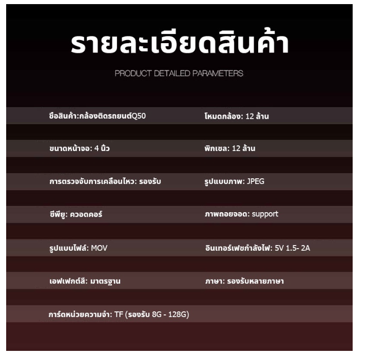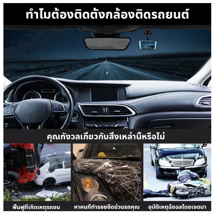 - บันทึกภาพอัตโนมัติเมื่อ Start รถยนต์ และปิดเครื่องอัตโนมัติ เมื่อดับเครื่องยนต์- เป็นกล้องถอยพร้อมมีเส้นบอกระยะ