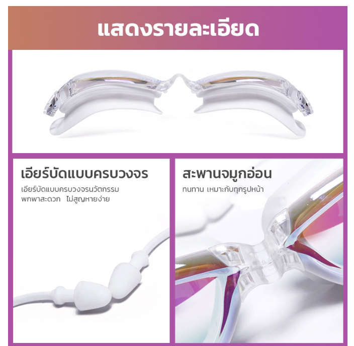 ชื่อ: แว่นตาว่ายน้ำด้วยเอียร์บัดชิ้นเดียว