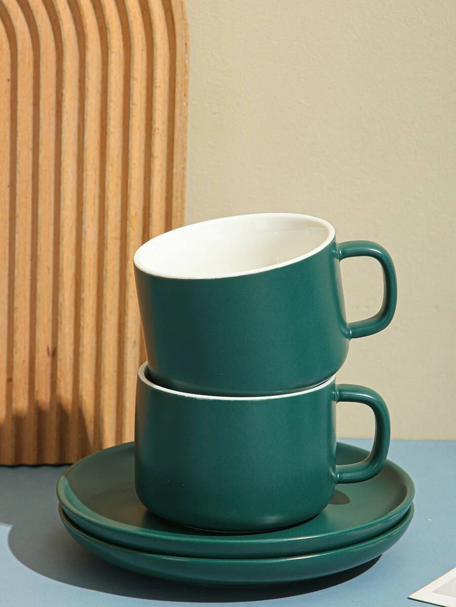 2 ชิ้น สีพื้น แก้วมัค & จาน oo-114