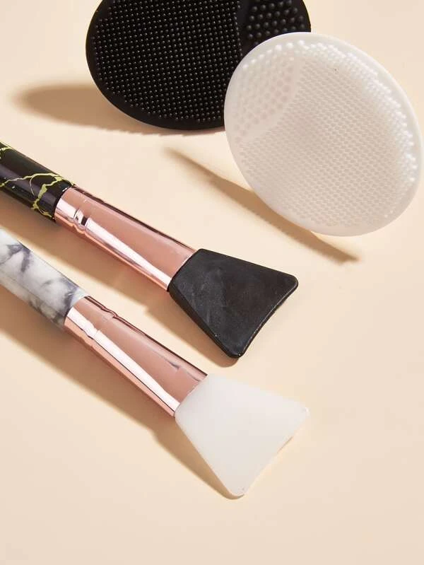 2 ชิ้น แปรงแต่งหน้า & 2 ชิ้น ทำความสะอาดผิวหน้า แปรง e-91