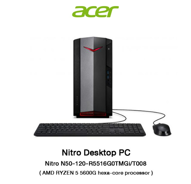 Acer Desktop PC Nitro N50-120-R5516G0TMGi/T008 (DG.E2JST.008) AMD RYZEN 5 5600G / RAM16GB / SSD512GB / NVIDIA® GeForce GTX 1660 / W11