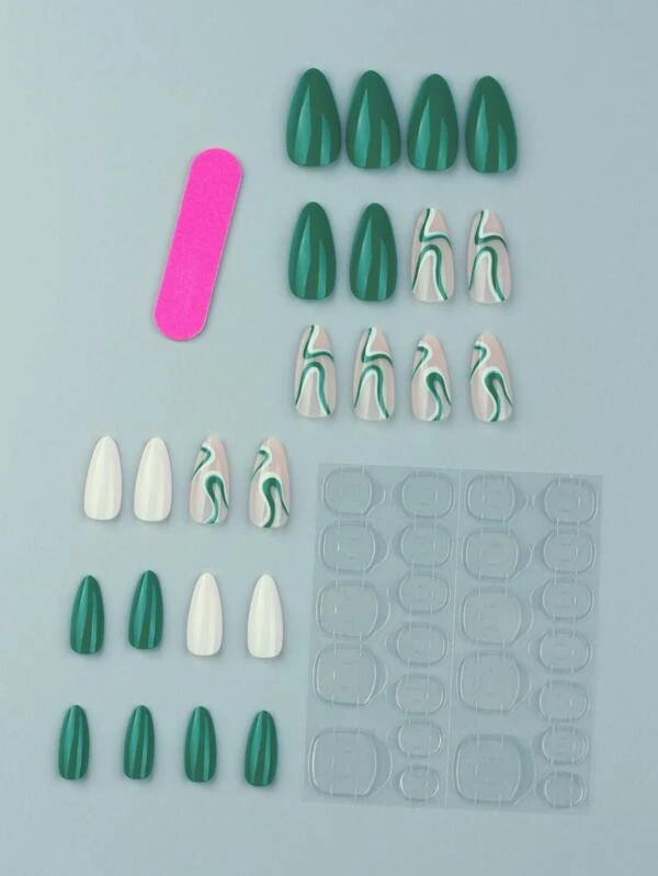 24 ชิ้น เล็บปลอม ทรงอัลมอนด์ ยาว & ตะไบเล็บ 1 ชิ้น & เทป 1 แผ่น c-46