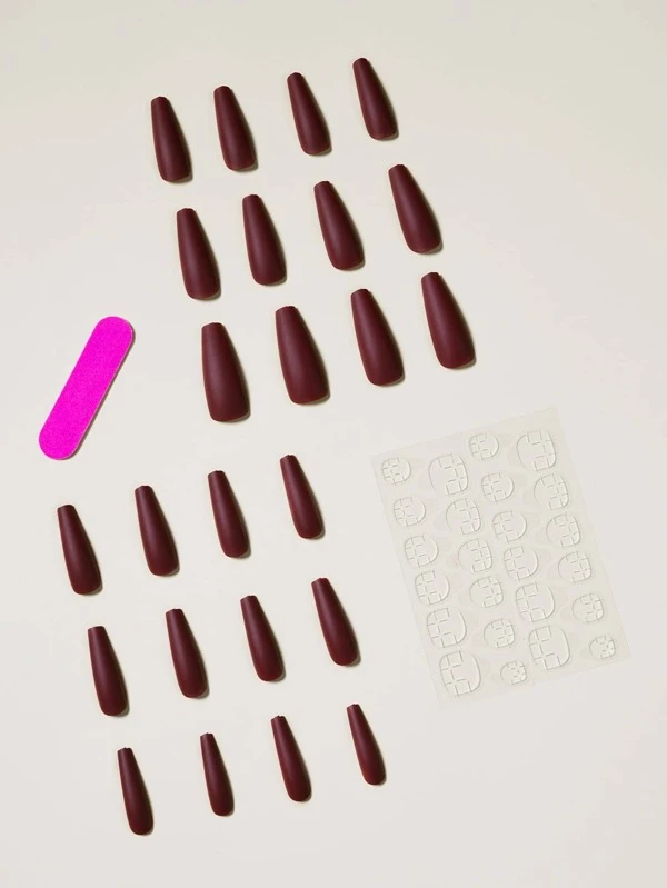 24 ชิ้น เล็บปลอม ทรงคอฟฟิน ยาว & ตะไบเล็บ 1 ชิ้น & เทป 1 แผ่น c-48