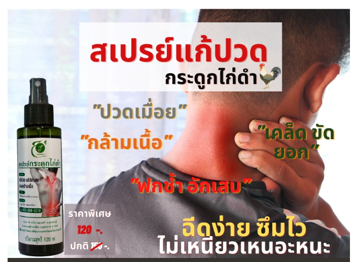 สเปรย์กระดูกไก่ดำ ยาสมุนไพรสารสกัดจากกระดูกไก่ดำ มีฤทธิ์ต้านอักเสบ ลดอาการปวดสูง