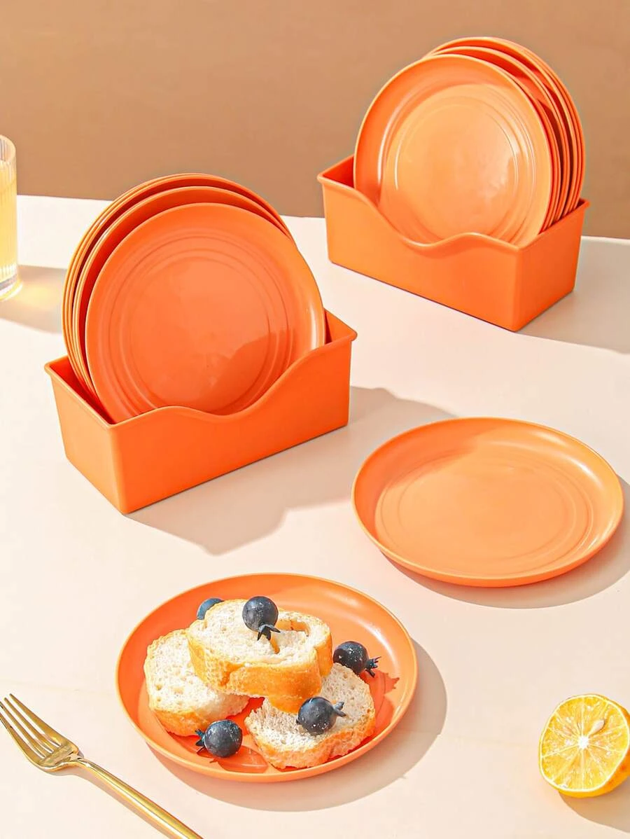 8 ชิ้น สีพื้น จาน & 1 ชิ้น กล่องเก็บของ ff-6