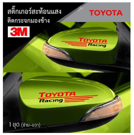 • สติ๊กเกอร์ติดรถ 3M สะท้อนแสง TOYOTA ติดกระจกมองข้าง ซ้าย-ขวา