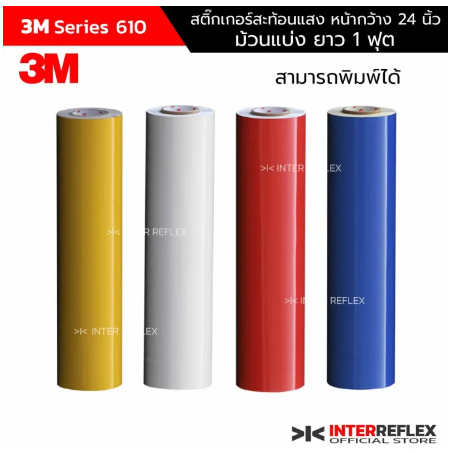 3M 610 Series สติกเกอร์สะท้อนแสง แบบพิมพ์ได้ กว้าง 24 นิ้ว ยาว 1 ฟุต ตัดแบ่งจากม้วนเต็ม