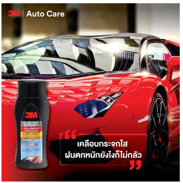 ? 3M ผลิตภัณฑ์เคลือบกระจกป้องกันหยดน้ำเกาะ Glass Coat Windshield ขนาด 200มล. PN08889LT