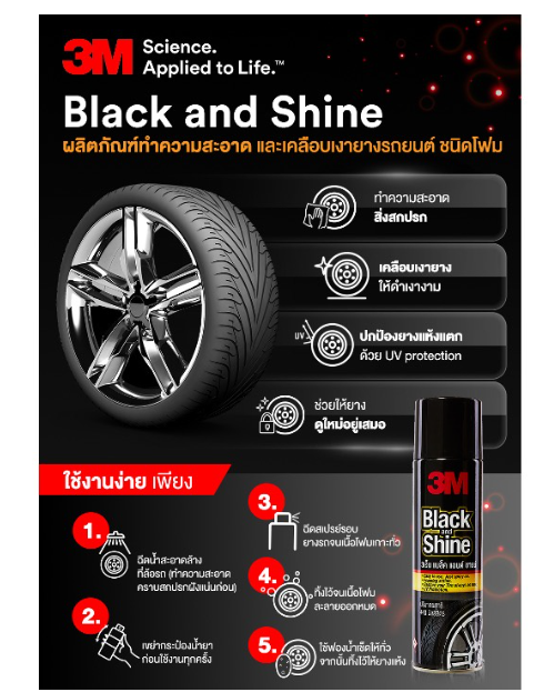 ? 3M Black & Shine ผลิตภัณฑ์โฟมทำความสะอาดและเคลือบเงายางรถยนต์ ขนาด 440 ml. (1 ขวด)
