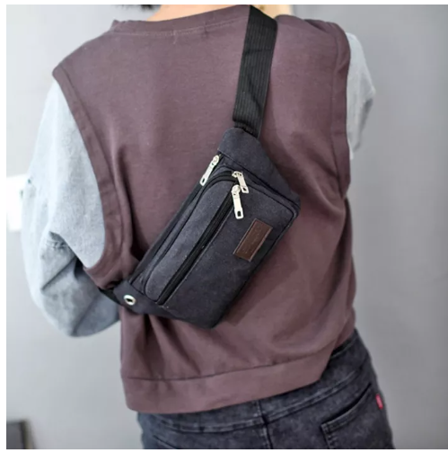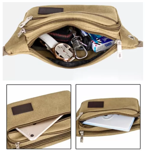 BAG95-(W111)กระเป๋าคาดเอวผ้าแคนวาส ขนาดพอดี ใส่แล้วไม่ตุง