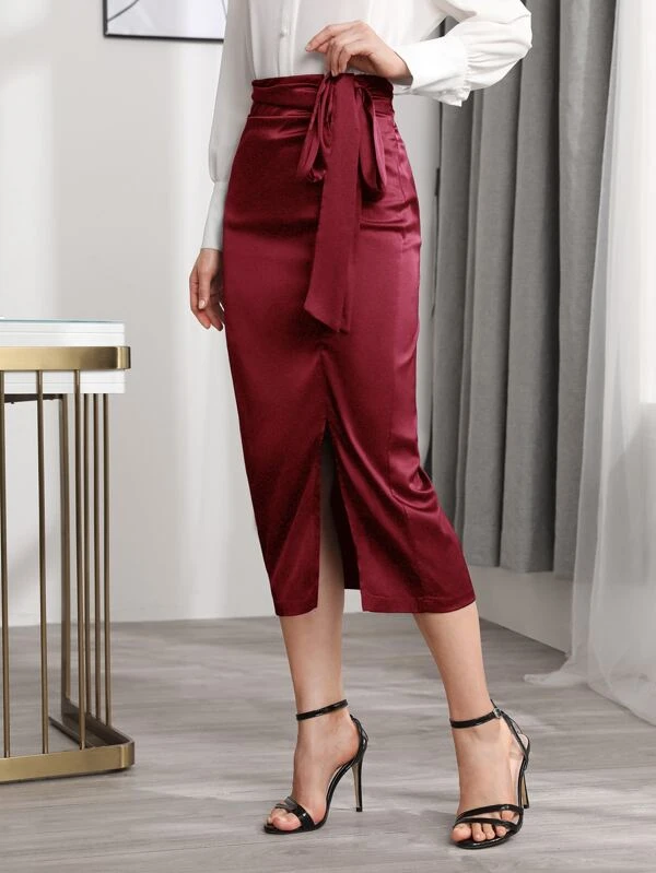 BIZwear กระโปรง ผูกข้าง ชายผ่า ผ้าซาติน jj-133