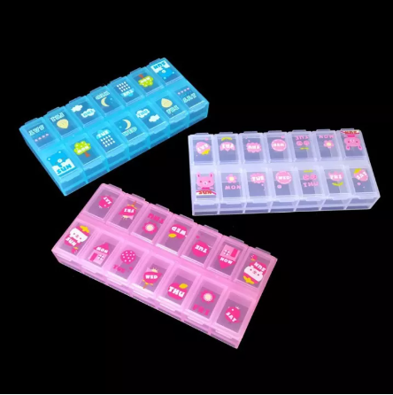 ช่วยจัดระเบียบใส่จัดเก็บยาแบบ 7 วัน สำหรับตอนเช้า เที่ยง บ่าย และกลางคืน แต่ละช่องทำเครื่องหมายอย่างชัดเจนด้วยรูปแบบที่อ่านง่าย