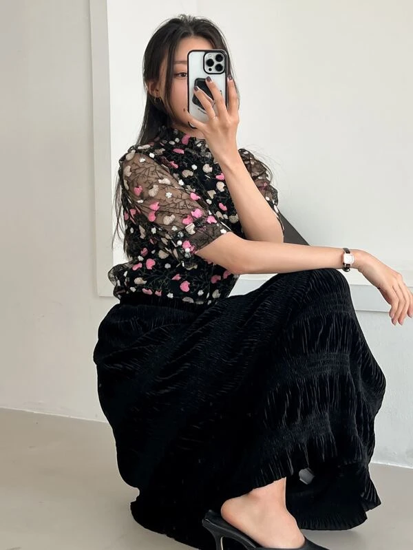 DAZY กระโปรง เอวสูง นัวเนีย / ชายระบาย jj-104