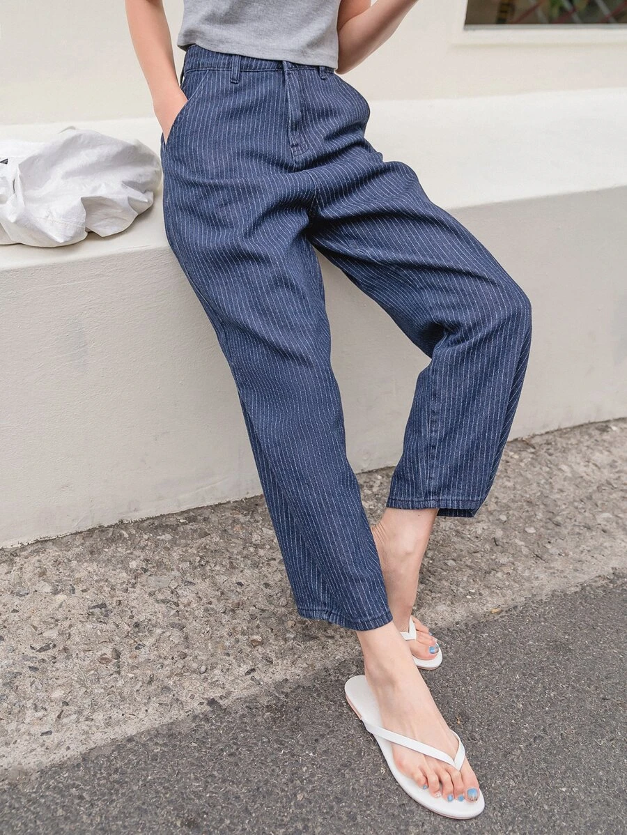 DAZY ยีนส์ ลายทาง กระเป๋าแนวทแยง ขากว้าง ee-62