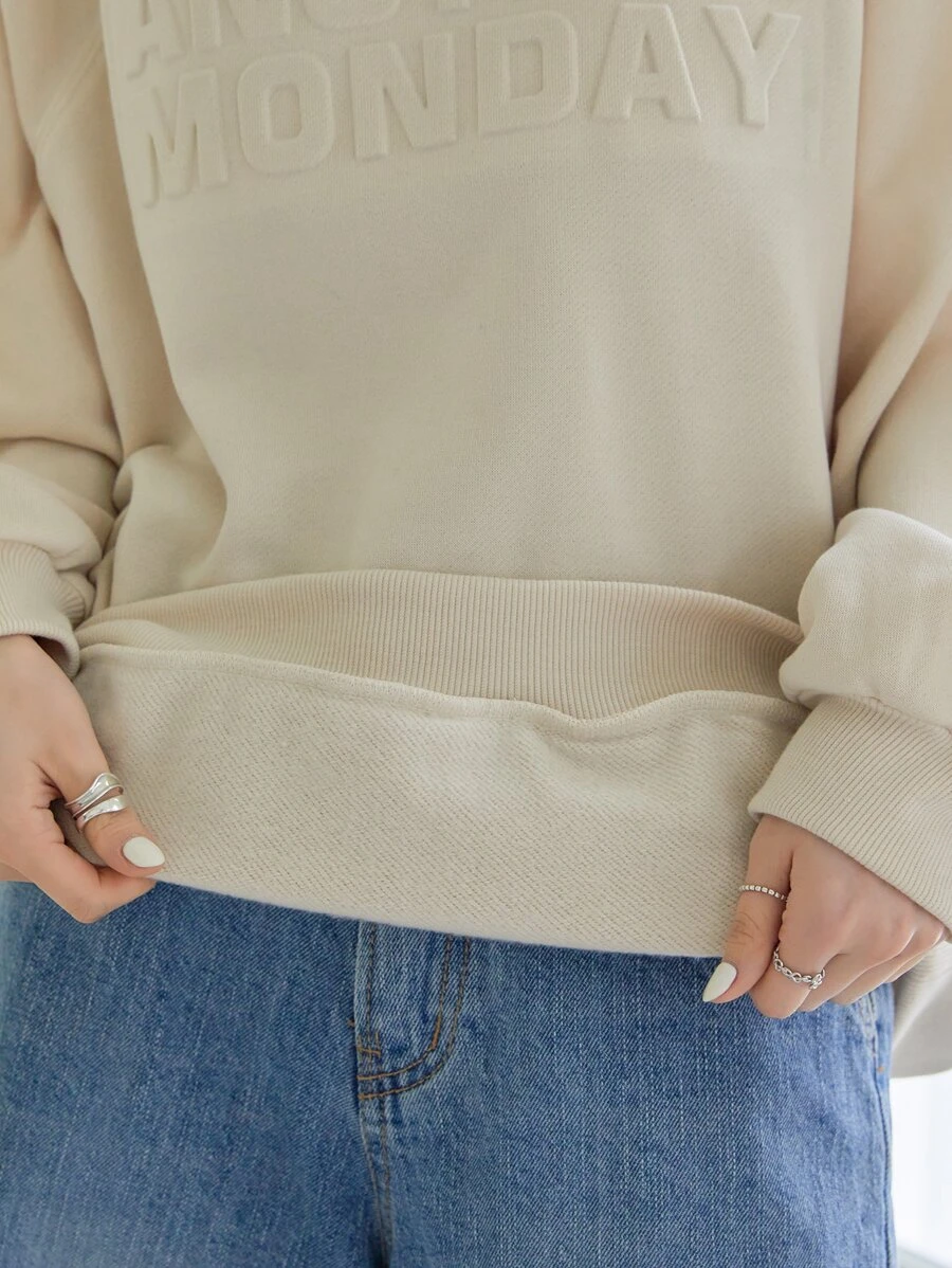 Dazy-Less ฮู้ดดี้ ลายนูน ตัวอักษร แขนเสื้อตะเข็บเย็บเฉียง cc-21