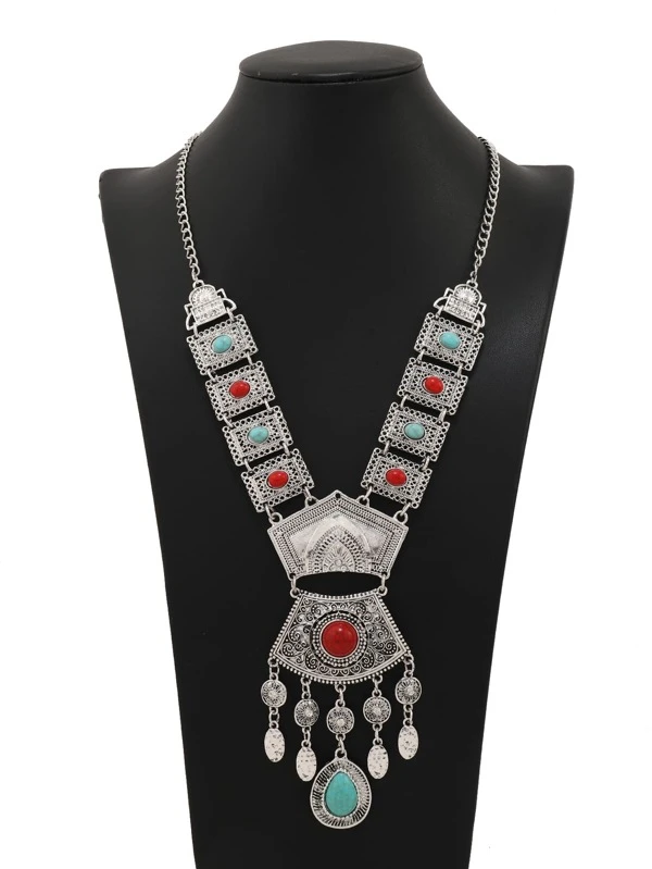 EMERY ROSE สร้อยคอ จี้ ตกแต่ง เทอร์ควอยซ์ พู่โลหะ kk-220