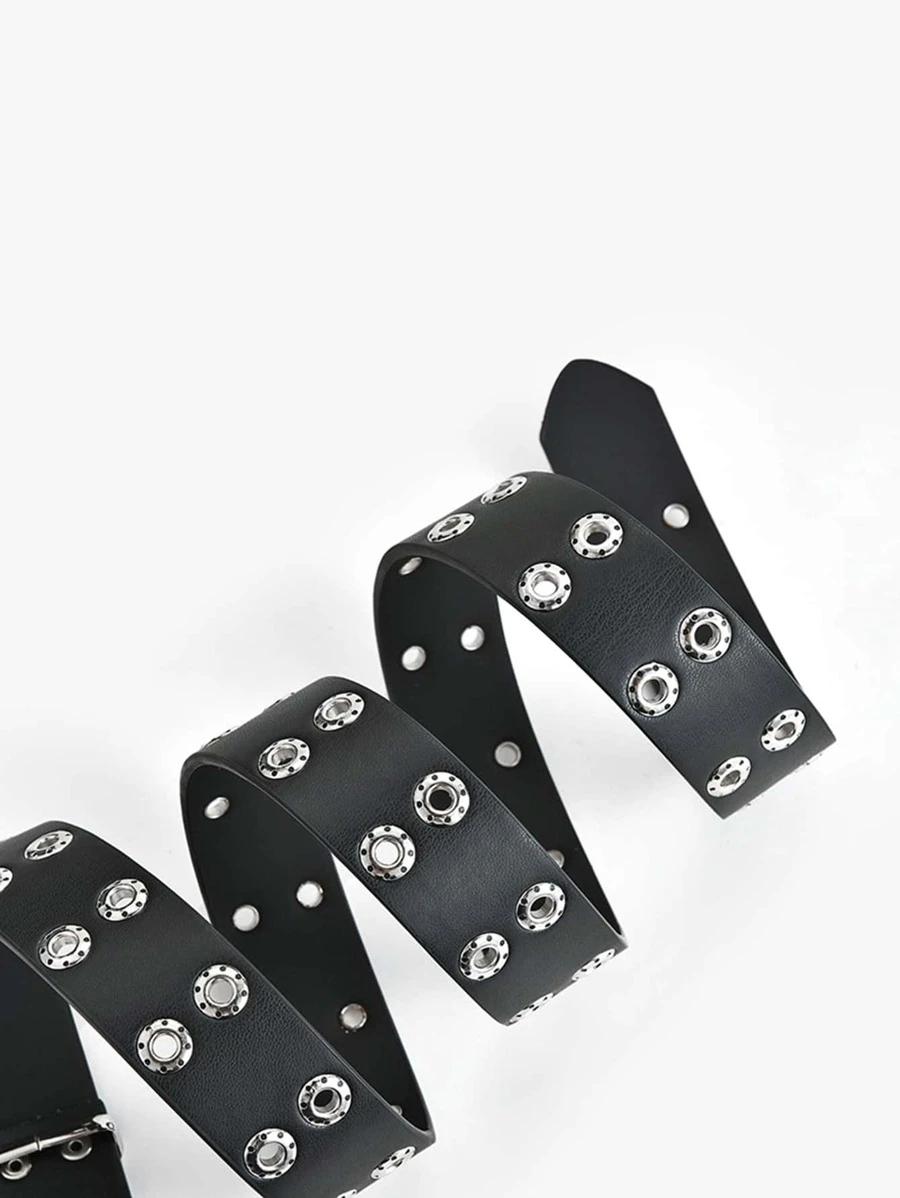 Eyelet Decor PU Buckle Belt l-041