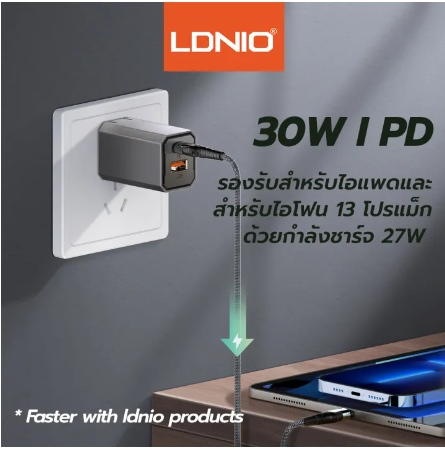 หัวชาร์จเร็ว LDNIO 2 USB-C+1 USB-A PD 30W A2527C