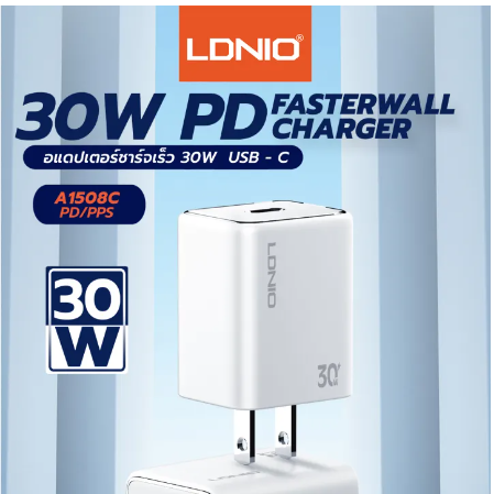 ข้อมูลเฉพาะของ LDNIO 30W Home Charger หัวชาร์จ30W อแดปเตอร์ชาร์จเร็ว USB-C PD 30W Fast charging ขนาดเล็กพกพาสะดวก รุ่น A1508C