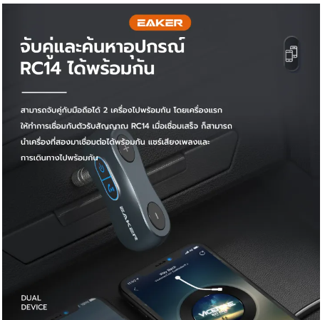 ข้อมูลเฉพาะของ EAKER FM Car Kit Bluetooth Receiver ตัวรับสัญญาณบลูทูธ บลูทูธติดรถยนต์ คอมผ่านช่องAUX/TF Card ฟังเพลงจากมือถือผ่านระบบไร้สาย ระบบเสียงสเตอริโอ รุ่น RC14