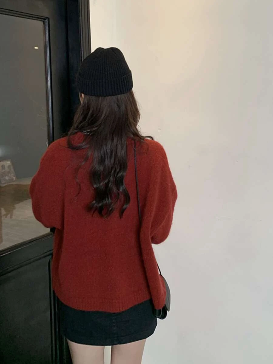 Honeyspot คาร์ดิแกน สีพื้น ไหล่ตก กระดุมแถวหน้า i-49