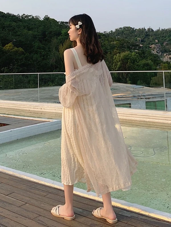 Honeyspot กิโมโน สีพื้น ไหล่ตก ลูกไม้ mm-55