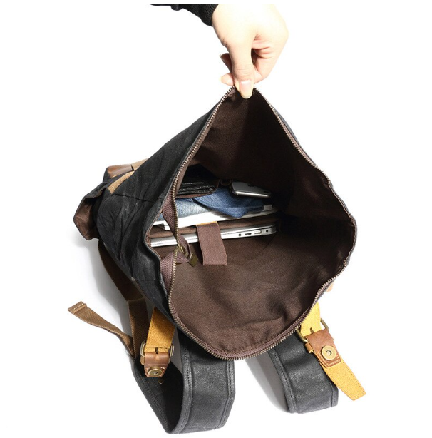 ใหม่กลางแจ้งกระเป๋าเป้สะพายหลังผู้ชายทำงานขนาดใหญ่ความจุกระเป๋าหนัง Crazy Horse สำหรับเดินป่า Vintage ผ้าใบกระเป๋า