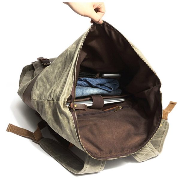 HU63-สไตล์วินเทจ Man กลางแจ้งกระเป๋าสะพายหลังผ้าใบขนาดใหญ่ความจุกระเป๋าเป้สะพายหลังชายกันน้ำกระเป๋าเดินทาง