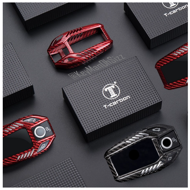 เคสรีโมทรถ BMW LCD Screen คาร์บอนไฟเบอร์แท้ T-Carbon พร้อมแผ่นใสกันรอย Protective TPU Film (Top Product ; Carbon Fiber Key Case) Key Sets ; BMW Key Case 7 Series 740 , 6 Series GT Car, Smart New 5 Series 530i x3 LCD Screen Car Key Case