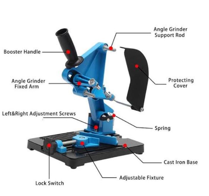 ใช้กับเครื่องเจียร 4นิ้ว ได้ทุกยี่ห้อ เป็นแท่น จับ Angle Grinder ( ลูกหมู ) มีฐานเป็นปากกา ปรับแต่งองศาได้ ฝาครอบป้องกันสะเก็ด ปลอดภัย ผลิตจากเหล็ก คุณภาพ แข็งแรง มั่นคง