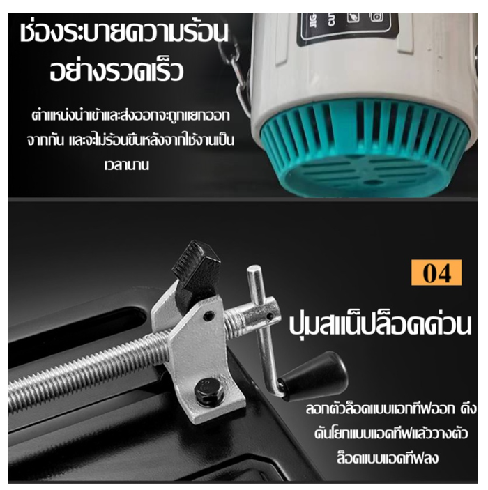 - ใช้ได้กับงานหนัก ฐานเป็นเหล็กแข็งแรงทนทาน