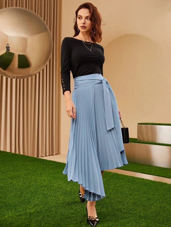 Modely กระโปรง มัดเอว ชายอสมมาตร พลีต jj-102